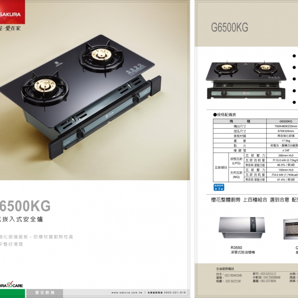 燃氣壓力:液化瓦斯2.8 kPa/天然瓦斯1.5 kPa