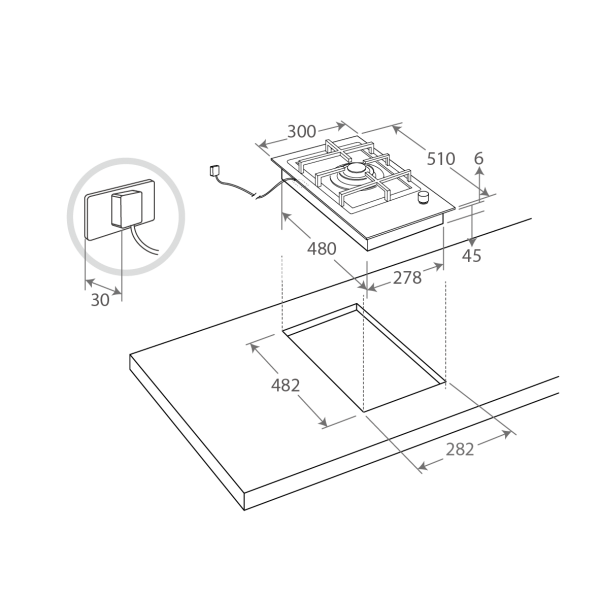 插頭安裝預留尺寸 :D30mm(建議參考值)