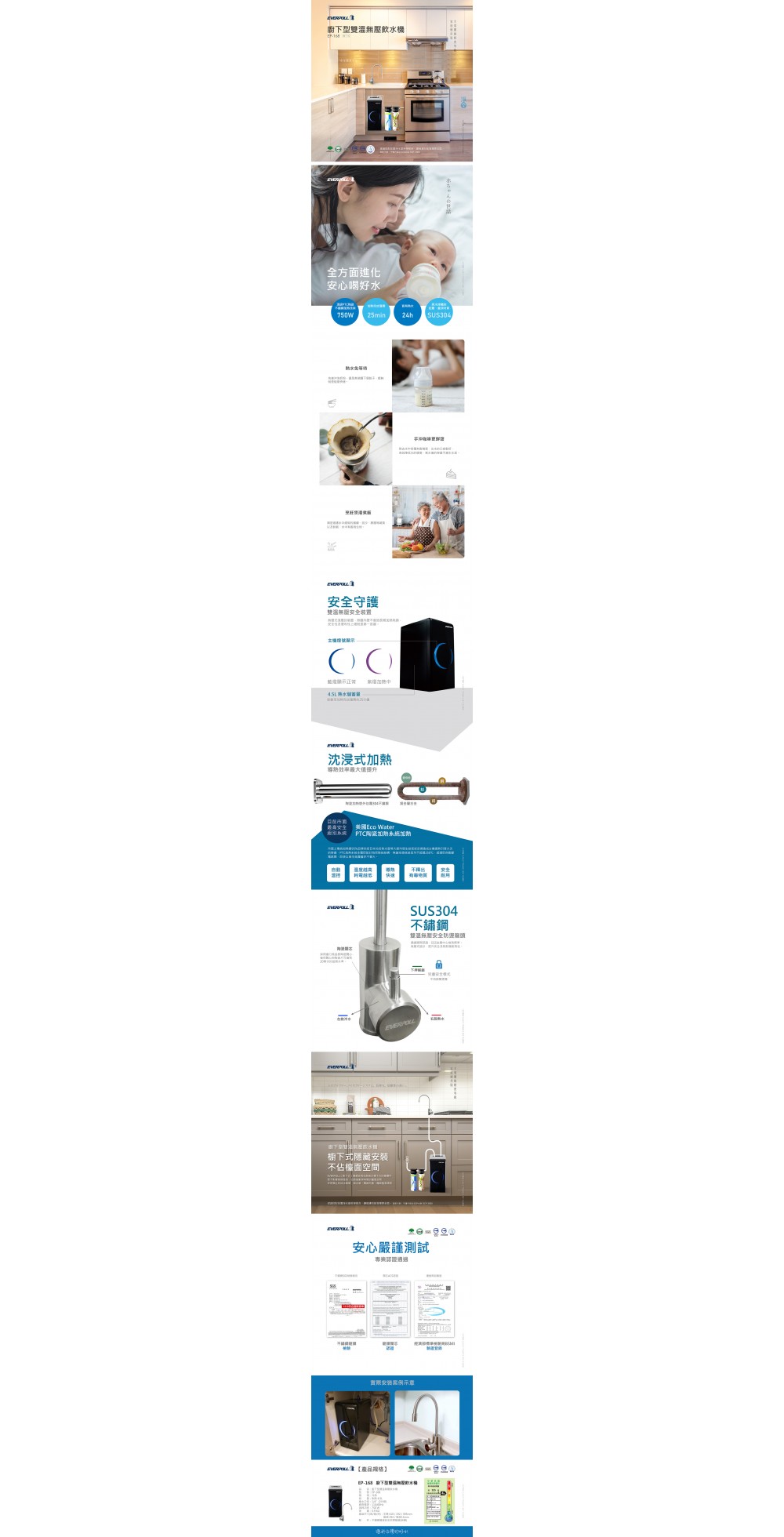 廚下型雙溫無壓飲水機EP-168 -主產品僅包含加熱器,如需生飲請加購淨水設備-